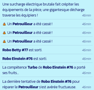 Exemple de surcharge electrique, malheureusement, juste après que le drone ait fini de réparer la salle...