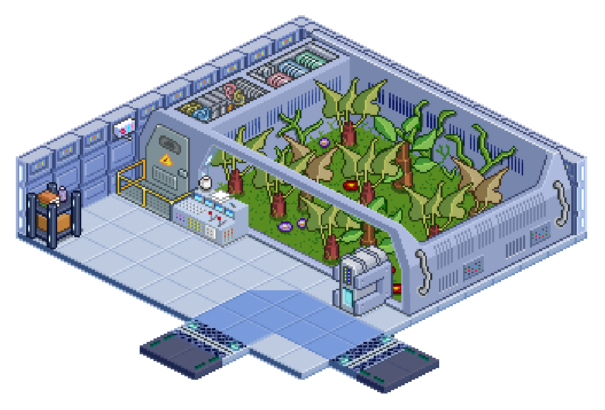 Une capture d'écran sans arrière-plan de la salle dans eMush, sans aucun personnage ou projet ou projets actif.