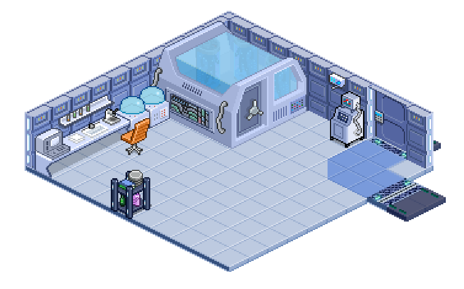 Une capture d'écran sans arrière-plan de la salle dans eMush, sans aucun personnage ou projet ou projets actif.