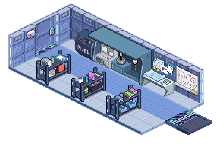 Une capture d'écran sans arrière-plan de la salle dans eMush, sans aucun personnage ou projet ou projets actif.